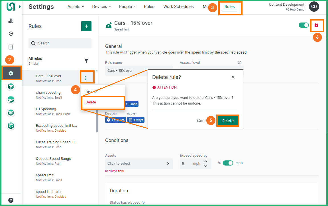 From the All Rules list, click the three-dots menu next to the desired Rule and select Delete