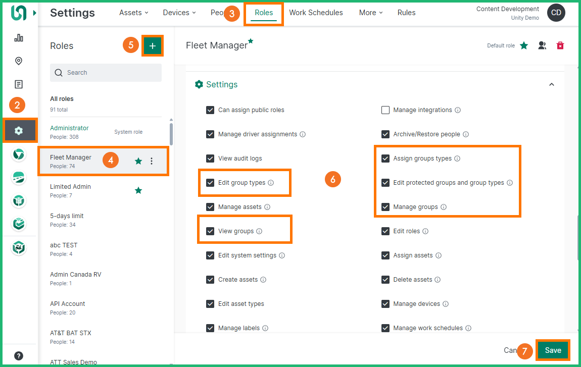To see and/or update Groups functionality in the application, users must have the corresponding permissions enabled for their assigned Role.
