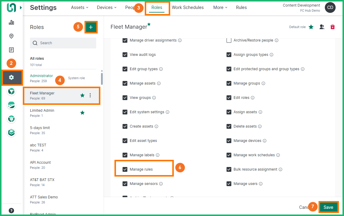To add Rules permissions to an existing Role, from the All roles list select the desired Role name