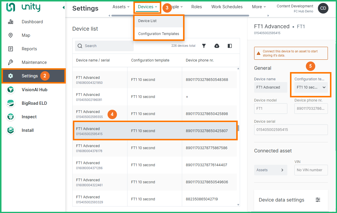 From the Device List, you can assign a Configuration Template to a device. Configuration Templates allow you to indicate the frequency that the system transmits the location of an asset.