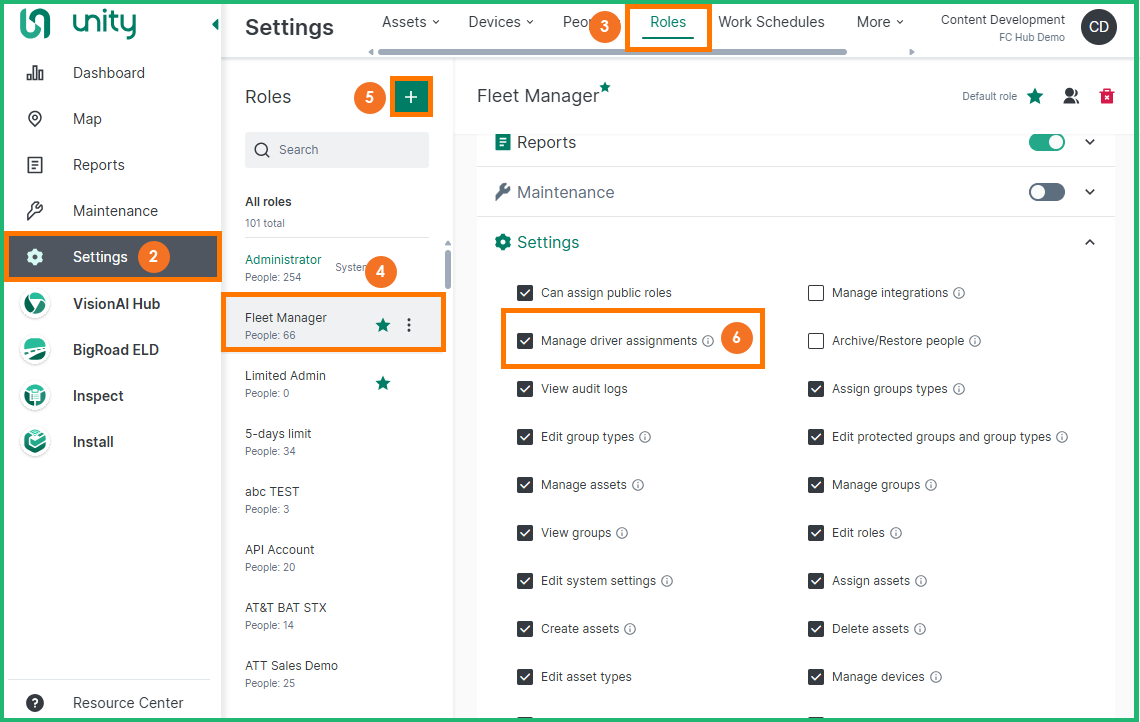 To manage Driver Tokens functionality within Unity, users must have the corresponding permission enabled for their assigned Role.