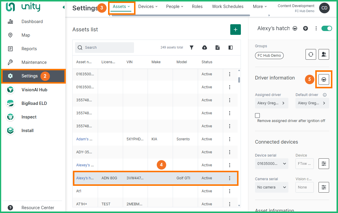 Follow the steps below to access the Driver assignment page from the Assets List page and People List page:
