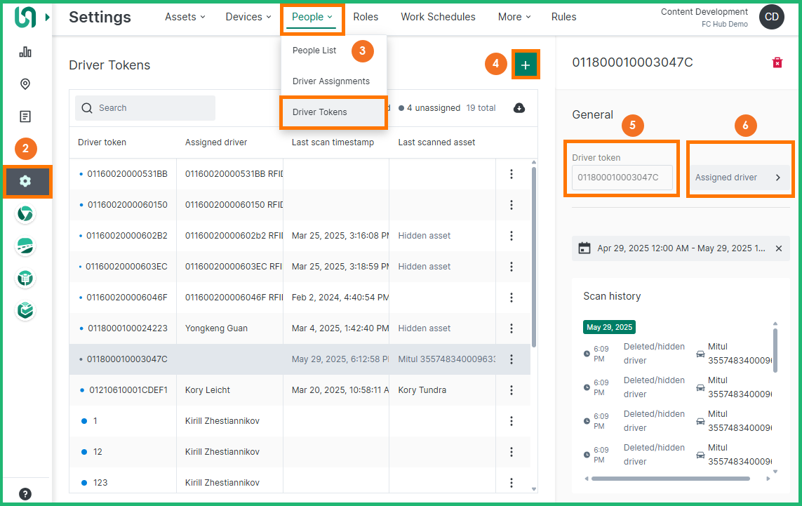 Follow the steps below to add a driver token and assign it to a driver: