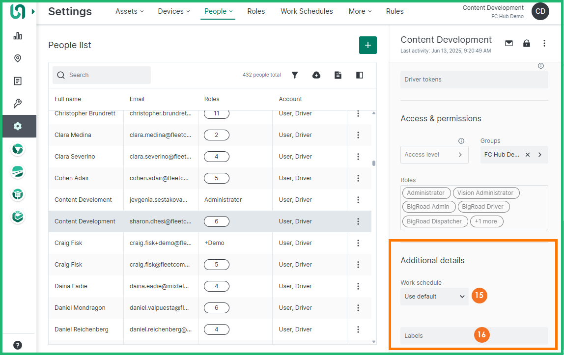 - From the Additional details section, click within the Work schedule field and select the desired work schedule to which you would like to assign this person