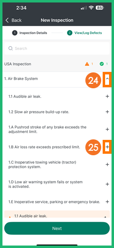 Tap the Plus button next to the appropriate defect