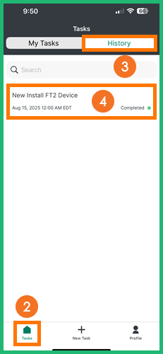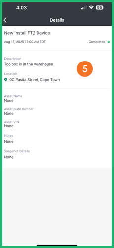 - View the Details of the Task, which include task name, due date/time, status, description, location and information received from the installer when the task is completed