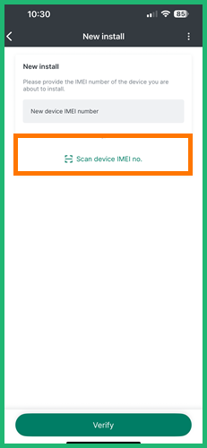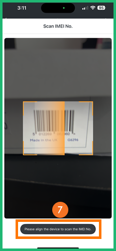 - Align the device to scan the IMEI no.