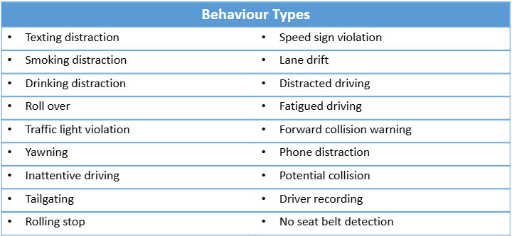 The following is a list of driver behaviour conditions that are available within a customer rule: